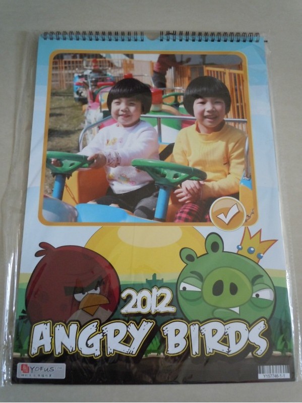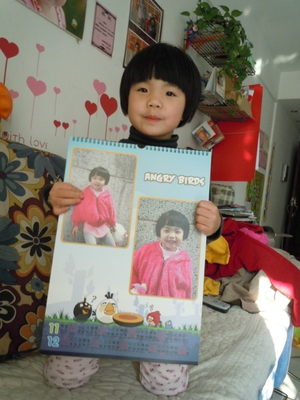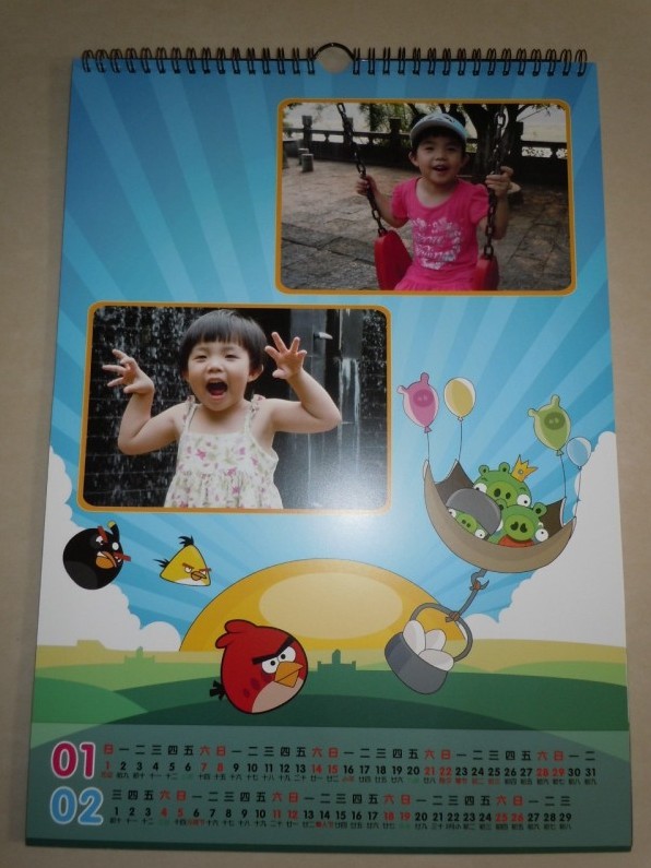 去年年底參加了搖籃網的有福個性掛歷活動,獲得了優惠券。因為年前就回老家去了,一直等到二月中旬回來才看到優惠碼,就趕緊找了一些照片,選了今年最流行的【憤怒小鳥】模版,也是為了多放幾張照片,預覽了幾遍感覺不錯,馬上上傳訂購了。