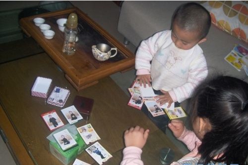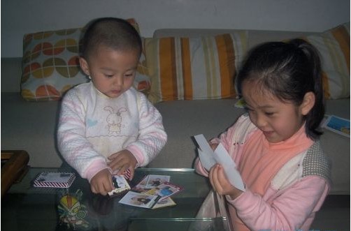 攤開在桌子上剛拍兩下,弟弟就過來?yè)v亂了,后來又補(bǔ)拍了幾張,姐姐說:我們來玩牌。結(jié)果弟弟一響應(yīng),兩人就玩開了,我拍好后趕緊收好,被他們那么一鬧,