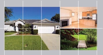 在圖片區域里加多幾張照片(上圖是由三張圖片組成),但圖片所占據的位置仍然要遵守原來的五列布局。而且象上圖一樣,大圖占三列,小圖占兩列,避免頁面顯得過于呆板。如果你有需要,甚至放進四張圖片也可以(見下圖)。在這種設計中,使其中一張照片比其它的照片都要大可以獲得最好的視覺效果。