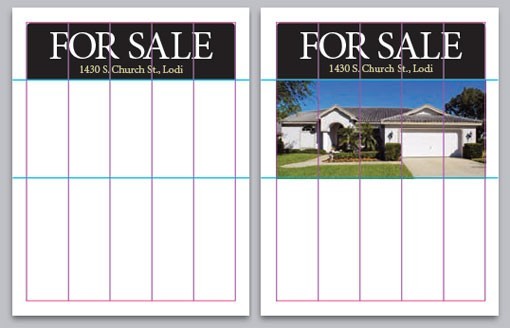 接著加上文字。我們將各種相關的文字(各種信息及要點)放在三個列的范圍中,并要注意文字間的對比,在上圖中是由較大的細襯線( serif )字體及一種較小的非襯線( san-serif )粗體組成形成了對比。這樣可以使觀看的人知道這是兩部分不同的文字信息。與標題一樣,這里的文字區域同樣是由那些列來決定的。最后就是加上聯系信息。地圖放在右邊,占了兩列,而右下角放上了小圖片。