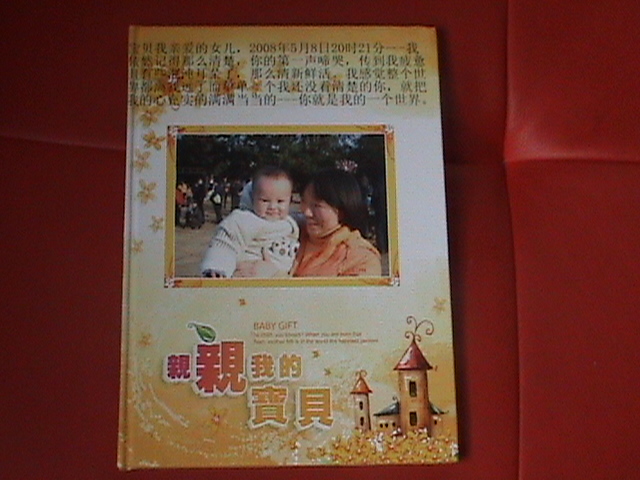 自從做好了相冊就很期待,寶寶出生到現(xiàn)在還是頭一回給她做成本的相冊呢,而且覺得特別有意義,有福網(wǎng)的,上面印有“親親我的寶貝"字樣,哈哈,看看,就是這個,呵呵