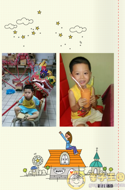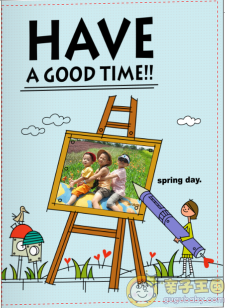 我選的這個模板是QQ版,走可愛路線,配上小朋友的相片,效果挺好的。我相信如果用專業(yè)相機(jī)拍的相片,出來效果將會更美!
