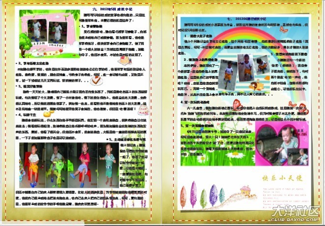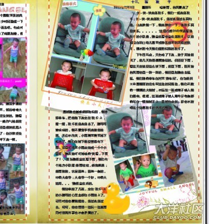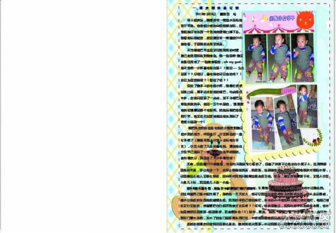 這樣找素材,定日記內(nèi)容就花了兩天去了。因?yàn)槲疫€是解決不了插入照片時(shí)只能顯示照片其中一部分的畫面這個(gè)難題,憑著我平面設(shè)計(jì)軟件半桶水的功力,我用了一個(gè)最愚蠢的辦法:先把我選定的模板“快樂小天使”的每一頁要求的大小抄下來,例如第一頁是“1701 X 2386”,然后用PS軟件或AI軟件建立同樣大小的空白頁,最后把要用的照片放在當(dāng)頁想要放的位置上。這樣,每一頁上你放多少張照片都可以,放在哪個(gè)邊角上也可以,想放多些日記內(nèi)容就把照片調(diào)小一點(diǎn),想圖片大一些就調(diào)大一些,任君選擇??墒?,這個(gè)方法很費(fèi)勁,對于PS或AI軟件熟悉的朋友來說就很簡單,可是我半路出家的,要琢磨,要消化,慢慢弄。一開始一晚只能做一張,然后一晚做2頁,最后漸漸快了一晚上可以做4頁。