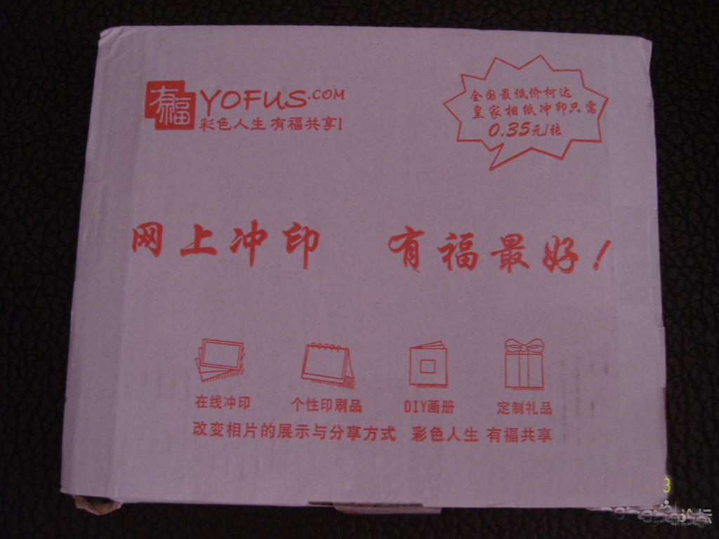 這是相冊的外包裝,防止相冊在運(yùn)輸過程中被擠壓損壞的,這上面有有福的一些介紹,最讓我心動的是右上角的那個框框里的內(nèi)容:一張相片沖印只要0.35元,想想以前我在專門的照相館里沖印一張要1元呢,下次知道了,如果要洗照片的話就選有福了--物美價(jià)廉!