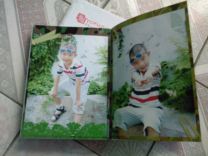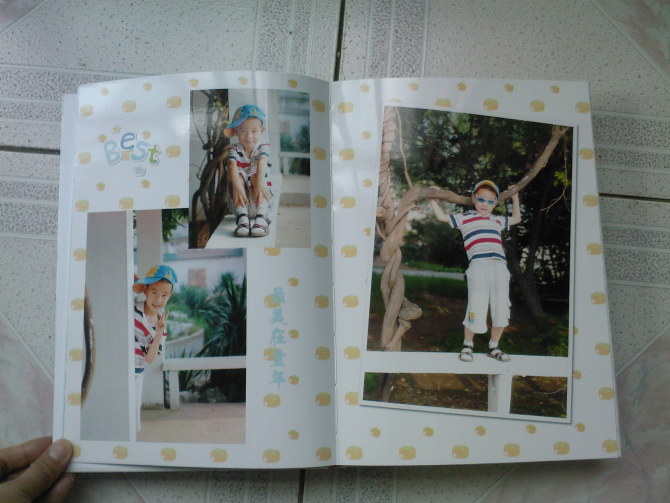 照了不少照片,有四十多張,這次我們選擇在有福網上給他DIY做了一本相冊。把自己喜歡的照片全都放了進去,不用向以前在攝影店里擔心超出套系數量還要額外補錢,呵呵。而且大姨的DIY 水平很高,做出來的相冊真的很漂亮,印刷裝訂都很專業,而且只要一百多塊錢,真是超值!