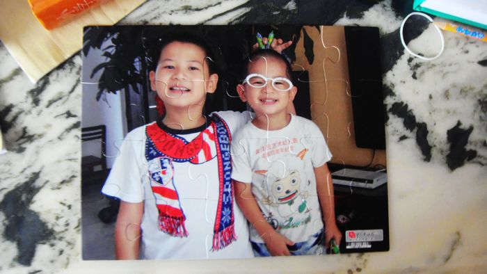 下面一張是現代版的兩兄弟,是不是長大了,一個長胖了,一個還是像猴子一樣。很棒的產品,大愛哦,如果要給予評分,當然五星少不了,親身體驗的感覺真不錯,再次謝謝有福網,很開心的說這次非常有意義的個性定制拼圖!