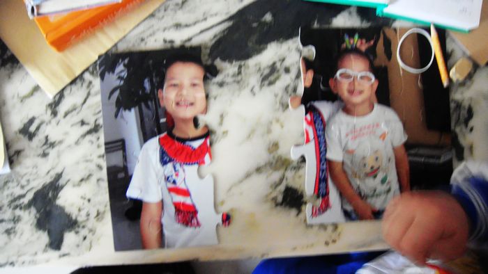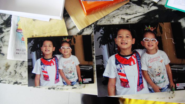 上面這一張是我特意把他給整開的,來顯示一下這個性拼圖的融洽度,沒錯,很有紀念意義的,給孩子們留下最美的笑容,永遠的刻在我的腦海里,下面這兩張是原本的照片和拼圖,像素還是不錯,沒有模糊或者很粗糙的感覺,就跟一般照片似的清晰,以前一直想做一張他們的海報,但每次我發出去的照片別人都說不行,要專來攝影棚里的才可以,所以一直沒有完成自己的心愿,這一次終于滿足了那么一點了,好帥的一天!祝福兩寶貝永遠都這么開心健康地度過每一天!