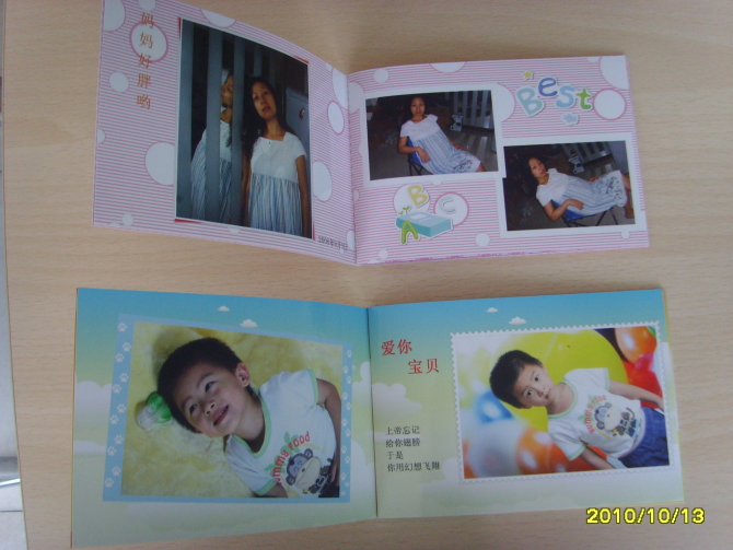 一直想為兒子制作個性相冊,因為忙于工作,沒有太多時間忙于此事,2010年9月30日突然心血來潮,在百度搜索找到幾家網上沖印的公司,經過一番對比,最后還是選擇了我認為性價比最高的有福網,因為是第一次在線DIY個性相冊,抱著試試看的心理,我在有福網上用戶注冊后,下載了“有福藝術家”,操作比我想象的要簡單的多,例如在線沖印,只需要將自己需要沖印的照片添加上傳即可,DIY個性相冊的制作方法也同樣如此,選擇好自己喜歡的模版后,“有福藝術家”會告訴我本照片書需要多少張照片,可以自己隨意加入照片,添加文字等,也可是選擇系統(tǒng)自動完成照片添加的動作,不滿意可以任意修改,直到自己滿意后上傳即完成照片書的制作。