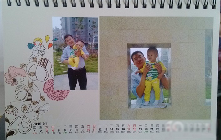 等待的時候心情是興奮的,收到的心情更不用說啦!臺歷紙張很好,顏色為大紅色,封面我放的是全家福,背景也是紅色的,很搭配呢。印刷的圖片很清晰。 可以直接站在桌面上,用起來很方便 。既能看日歷,又能看到照片,擺在擺臺上,既美觀又實用。自己親手制作,很有紀念意義,是值得珍藏的一份臺歷。
