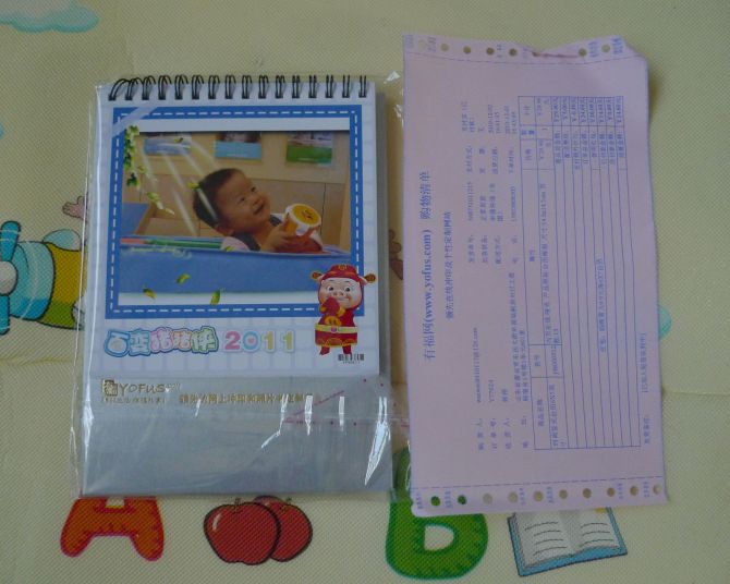 前段時(shí)間朋友給我一個(gè)帳號(hào),可以在有福網(wǎng)免費(fèi)制作臺(tái)歷!真是太高興了,第一次給我家寶寶做臺(tái)歷,也是寶寶的第一本臺(tái)歷! 制作過(guò)程是相當(dāng)?shù)暮?jiǎn)單,先到有福網(wǎng)下載了軟件,裝在了桌面上。以前不知道在網(wǎng)上也可以做照片郵寄照片,這次真是讓我開了眼界,在這個(gè)軟件里就可以制作很多的個(gè)性印品、相冊(cè)書、水杯、親子裝、筆記本、海報(bào)啊等等,這么多種類,令人興奮。 下載軟件后,安裝在桌面上,形成有福藝術(shù)家的圖標(biāo),雙擊打開,左邊有7個(gè)種類,點(diǎn)進(jìn)自己想要制作的,里邊還有很多種模版供你選擇。我可用紅包是6X7的,這次選了豬豬俠的模版,做完之后又發(fā)現(xiàn)一個(gè)更好的模版,爭(zhēng)取下次再給寶寶做一個(gè)!嘿嘿,為了選照片我把最近寶寶所有的照片統(tǒng)統(tǒng)選了一遍,呵呵。越來(lái)越后悔當(dāng)初沒(méi)買單反,o(︶︿︶)o 唉。沒(méi)少花錢,這個(gè)機(jī)子始終沒(méi)有單反那個(gè)膠片效果!太單薄了,嗚嗚 接下來(lái)上傳訂單,服務(wù)真是周到,不僅可以在網(wǎng)站上查詢到自己的訂單,而且還發(fā)郵件告知已發(fā)貨。然后就等待臺(tái)歷到來(lái),真是又激動(dòng)又興奮! 今天個(gè)性臺(tái)歷收到了,除了袖珍一點(diǎn),別的都很好,哈哈!