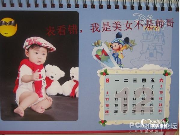 還真的沒有給菲兒寶貝做過這種可愛的小東西,時(shí)間有限接觸的也少,這是一個(gè)相當(dāng)好的時(shí)機(jī),可以為這個(gè)可人兒做一本了。 下載了臺(tái)歷制作軟件,選擇了一個(gè)迪士尼的臺(tái)歷模板,上面有菲兒很喜歡的米老鼠,而且可愛的造型也深得我心。接下來就是上傳照片了,開始怎么也不行,郁悶死人了,速度也跟蝸牛有得一拼。最后只能把熟睡中的菲兒他爸給挖起來,他說不行就重新下載安裝過再試啊。就刪了先前的重新下載了一個(gè),這次真的很快了。照片填充完后,看到上面還有頁(yè)面修飾的,就想把漂亮的圖案都留給菲兒,因?yàn)樨澏喾炊漠嬅婧芑ǎ竺娑贾挥昧艘稽c(diǎn)點(diǎn)小裝飾,也寫上了一些媽媽對(duì)寶貝說的話,背面日期上重要的梯子也做了特別的說明,好方便的,這樣就不會(huì)把大家的生日忘記了。 邊看邊修改,不滿意的就換照片,弄完已經(jīng)是凌晨3點(diǎn)多了。最近都沒睡好過,頭疼的很。不過即便這樣躺在床上還是很高興,但是菲兒睡覺喜歡踢被子,這宿感覺沒睡就天亮了。 3天后菲兒爸就帶回來一包裹,接過來就知道我的東西到了,硬紙殼的包裝盒避免了運(yùn)輸途中的擠壓和磨碎,有福還真是有心。打開包裹時(shí)菲兒也過來湊了一腳,咱三口子看著這個(gè)臺(tái)歷開心的不得了,菲兒還來想上去抓自己!翻開里面也沒有難聞的氣味,給菲兒拿著也放心。每一頁(yè)的印刷都非常的漂亮,銅版紙的質(zhì)感很好,不像一般的薄,這個(gè)要厚實(shí)些。 隔天就拿著東西和菲兒去姥姥家顯擺來了,相當(dāng)受歡迎的,圍觀指數(shù)不是一般的