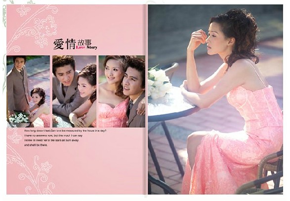沒有花很多錢,通過朋友的介紹,來到了有福網,選擇影樓畫冊,然后下載有福藝術家軟件,將記錄咱倆在婚禮上每個鏡頭的照片一一編輯,制作了一本屬于我和老公獨一無二的婚紗影樓相冊。哈哈,我選擇了”曼妙碎花“的風格,淡雅高貴,和影樓幾千塊的相冊好不遜色。哈哈,超級喜歡哦!