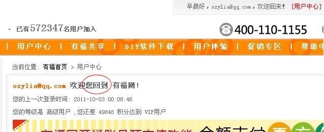 2、因為我以前注冊過,所以看直接登錄了。(很喜歡有福網用的“回到”這個詞,讓我感覺是離家的游子終于回了家。)
