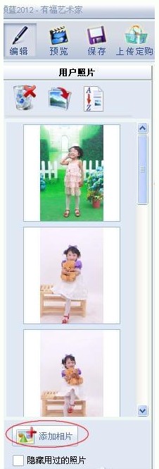 上傳好的照片就顯示在軟件的左側欄里了。如果覺得照片不滿意還可以刪除替換等等。如果排列順序不是你想要的位置,頁數可以移動的。如果照片不夠,還可以添加照片。