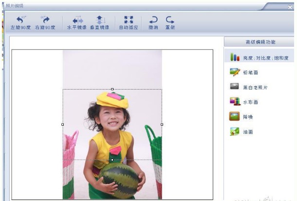 把照片拖進去后,如果位置不合適,可以雙擊照片,然后便會進去編輯框。也可以單擊,出現如下的畫面,選擇七色球也可以進去喲。