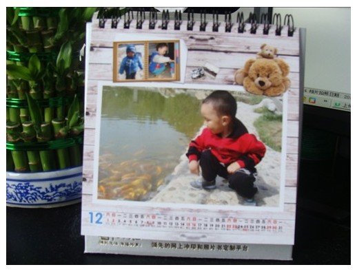 我選的是幸福熊仔的模板,兒子很喜歡小熊喲!實物要比圖片清晰漂亮的多,只是我拍的圖片效果不太好,下面就來曬曬我制作的精美臺歷!