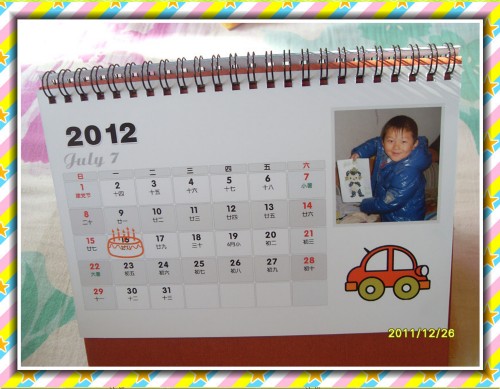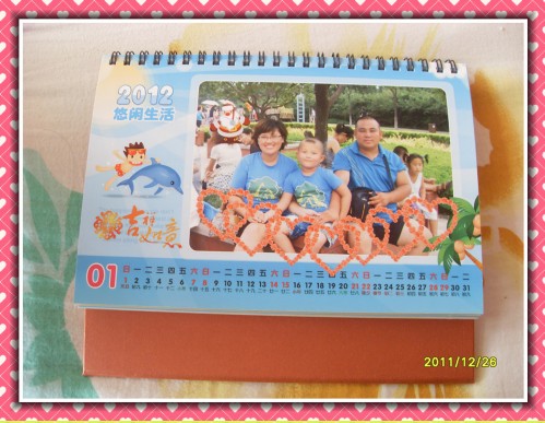 有福網的臺歷模板非常多,我選取了“悠閑生活”,風格清新又充滿浪漫生活氣息,趕緊整理了日常的照片在有福藝術家軟件上制作,一個小時就輕松搞定,這次的8寸臺歷是雙面印刷的,而且我還在家人的生日上做了蛋糕標注,實用又美觀啊。趕緊下單,等待收貨。結果有天客服通知我韻達快遞不到我們這里,讓我或者補運費或者讓我自己去市區提貨,可是以前是到我們這里的,我又給我們這里的韻達快遞打電話,說是能到。又聯系客服,客服又給問了北京的韻達快遞,說到不了,沒辦法只好修改了地址,讓老公的朋友幫忙收快遞,然后又花了8元發到我家里,雖然有一些曲折,可是當我拿到精美的臺歷的時候所有的不快都煙消云散了,滿心的喜悅和得意。來看看我的片片吧。