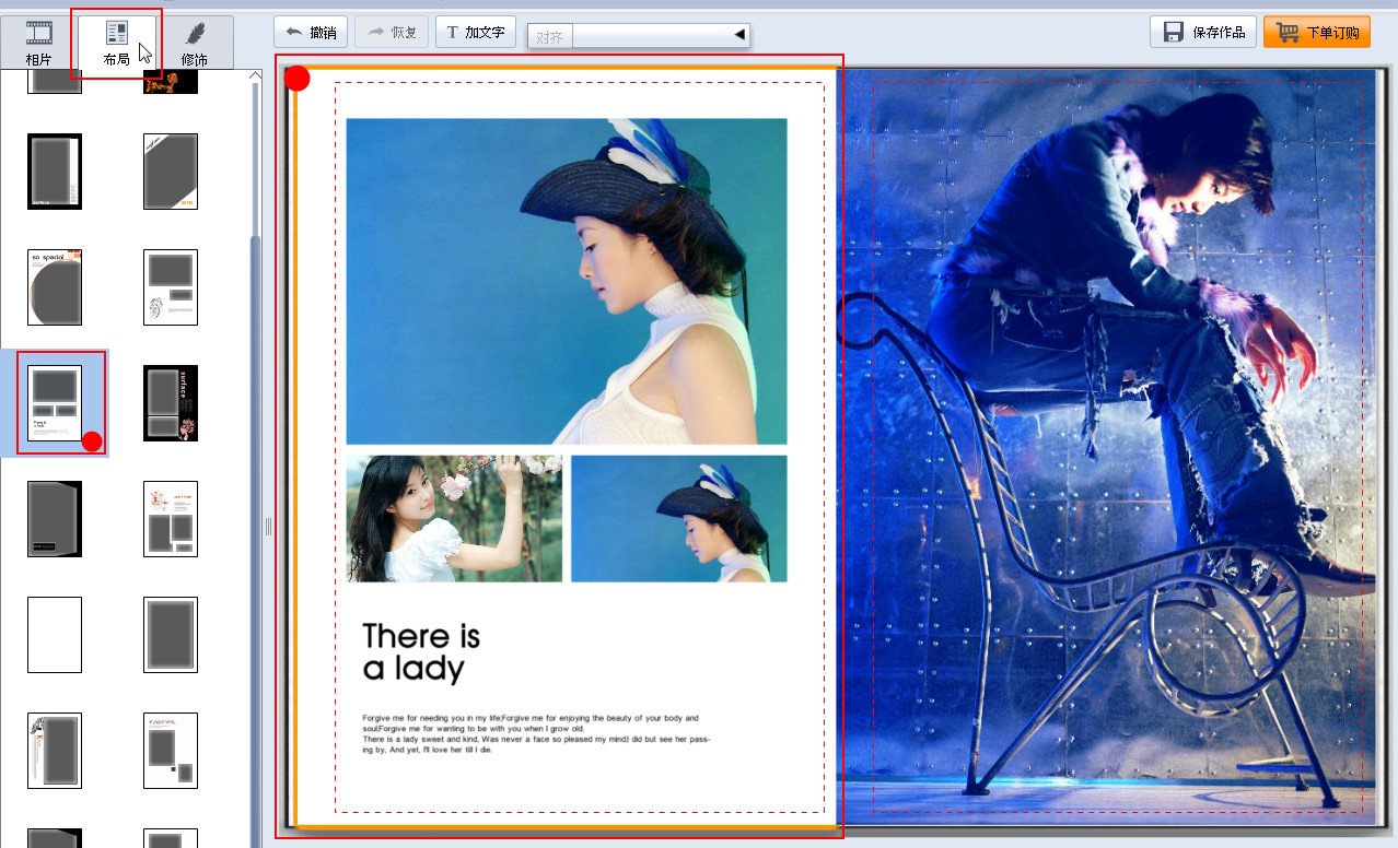 步驟六:個性內容編輯。 照片調整&文字編輯&添加裝飾&布局&頁序調整
