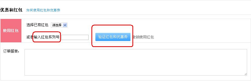 進(jìn)入“填寫訂單核對信息”頁面后,請仔細(xì)確認(rèn)訂單信息后,在“優(yōu)惠和紅包”中找到“使用紅包”,選擇“已有紅包類型”或“手動(dòng)輸入代碼紅包序列號(hào)”,點(diǎn)擊“驗(yàn)證紅包和優(yōu)惠券”以確保紅包的可用性,驗(yàn)證成功即可獲得相應(yīng)優(yōu)惠。同時(shí)需要注意,每次活動(dòng)的內(nèi)容不同,優(yōu)惠券的使用期限也不同,請及時(shí)抵扣使用。